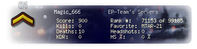 | Suicides | 0 | Headshots | 0 | Headshot / Kill | 0 % |