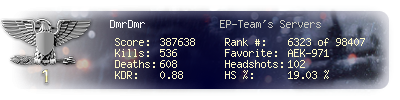 | Kill-streak | 17 | Death-streak | 14 | Team Kills | 1 |