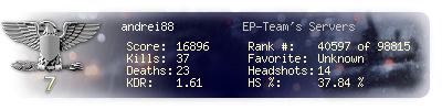 | Suicides | 1 | Headshots | 14 | Headshot / Kill | 37.84 % |