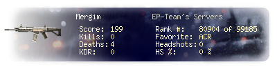 | Kill-streak | 0 | Death-streak | 2 | Team Kills | 0 |