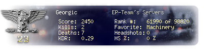 | Suicides | 0 | Headshots | 0 | Headshot / Kill | 0 % |