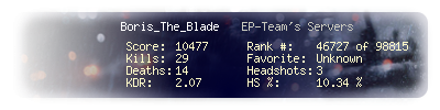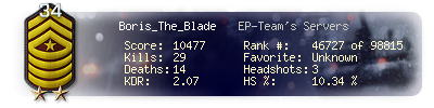 | Kill-streak | 4 | Death-streak | 9 | Team Kills | 0 |