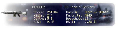 | Kills | 244 | Deaths | 548 | Kill / Death | 0.45 |