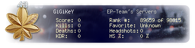 | Suicides | 0 | Headshots | 0 | Headshot / Kill | 0 % |