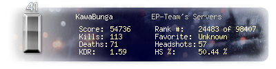 | Kills | 113 | Deaths | 71 | Kill / Death | 1.59 |