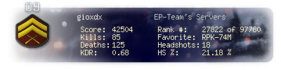Kills | 85 | Deaths | 125 | Kill / Death | 0.68 |