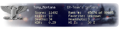 | Kills | 10 | Deaths | 34 | Kill / Death | 0.29 |