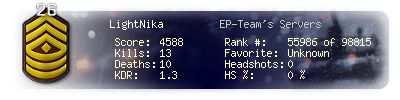| Suicides | 0 | Headshots | 0 | Headshot / Kill | 0 % |