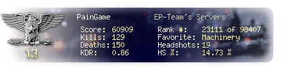 | Kill-streak | 7 | Death-streak | 13 | Team Kills | 0 |