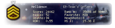 | Suicides | 3 | Headshots | 8 | Headshot / Kill | 15.38 % |