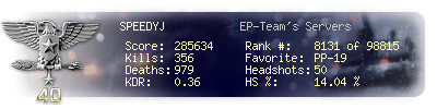 | Kill-streak | 5 | Death-streak | 27 | Team Kills | 0 |