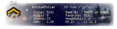 | Kill-streak | 4 | Death-streak | 6 | Team Kills | 0 |