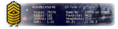 Suicides | 5 | Headshots | 37 | Headshot / Kill | 22.98 % |