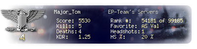 | Kills | 5 | Deaths | 4 | Kill / Death | 1.25 |