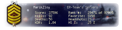 Suicides | 2 | Headshots | 23 | Headshot / Kill | 25 % |