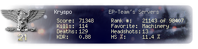 | Suicides | 1 | Headshots | 13 | Headshot / Kill | 11.4 % |
