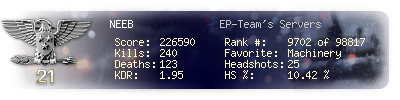 | Kills | 240 | Deaths | 123 | Kill / Death | 1.95 |