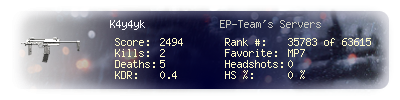 | Kill-streak | 1 | Death-streak | 5 | Team Kills | 0 |
