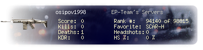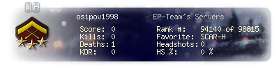 | Suicides | 0 | Headshots | 0 | Headshot / Kill | 0 % |