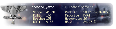 | Kill-streak | 8 | Death-streak | 15 | Team Kills | 0 |
