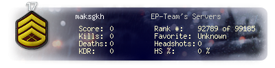 | Suicides | 0 | Headshots | 0 | Headshot / Kill | 0 % |