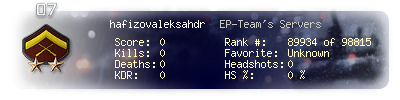 | Suicides | 0 | Headshots | 0 | Headshot / Kill | 0 % |