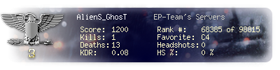 | Kill-streak | 1 | Death-streak | 15 | Team Kills | 0 |