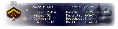 | Kill-streak | 7 | Death-streak | 8 | Team Kills | 0 |