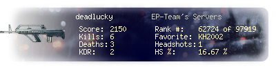 Suicides | 0 | Headshots | 1 | Headshot / Kill | 16.67 % |